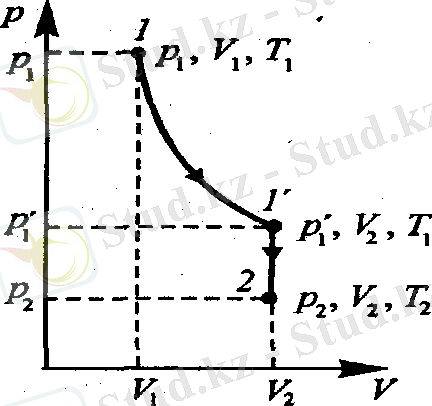 Айталық газдың берілген массасының алғашқы күйінің параметрлері p 1 , V 1 , T 1 болсын. Газбен қандай да бір процесс жүріп, оның соңғы күйінің параметрлері p 2 , V 2 , T 2 болсын. (6-7. 1-сурет. ) 1 күйден 2-ші күйге газдың көшуі 1) изотермалық (1-1Ө изотермасы) 2) изохаралық (1Ө-2 изохаралық) екі процесс арқылы болсын. Бойль-Мариотт және Гей-Люссак заңдарына сәйкес