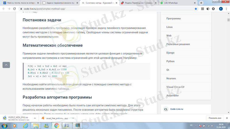 Параметрлік бағдарламалау есептерін C++ тілінде симплекс әдісімен шешу