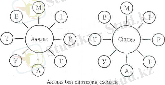 Ойлау әрқашан анализ және синтез процестерінен басталады . Ойлау - түйсік пен қабылдаудағы анализ бен синтездің жаңа мазмұнға ие болған түрі. Анализ дегеніміз ой арқылы түрлі заттар мен құбылыстардыңмәнді жақтарын жеке бөліктерге бөлу. Синтезде ой арқылы заттың құбылыстық барлық элементтері біріктіріледі. Анализ бен синтез - бірімен-бірі тығыз байланысты, бірінсіз-бірі болмайтын құбылыс. Бұл екеуі - бірінен-бірі ешқашан ажырамайтын ой процесінің негізгі компонентгерінің бірі. Кез-келген сұраққа жауап табу, қандай болмасын бір мәселені шеше алу, анализ бен синтездің түрлі қиысуларын қажететеді. Мәселен, мылтықты жеке бөліктерге ажыратсақ, бұл-анализ (талдау) болады да, кейіннен осы бөліктерді белгілі тәртіппен құрастырсақ синтез (топтастыру) болады.