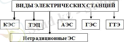 KES - конденсациялау ES; ЖЭС - жылу электр станциясы; АЭС - АЭС; СЭС - Hydro ES; GTE - Газтурбиналы электр станция.