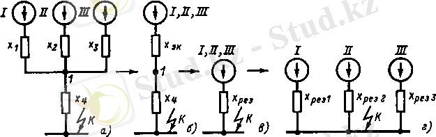 Эквивалентті тізбекті түрлендіру процесінде көбінесе бірнеше көздерден келетін токтар кедергісіөтетін кезде қосылған электр тізбектерін бөлу мәселесі туындайды x 4 . әрбір көзден кінәсі нүктесіне жеткізілетін ток анықтау мақсатында, суретте 7. 1көрсетілген рентген диаграмма түрінде түрлендіріледі гтиіс.