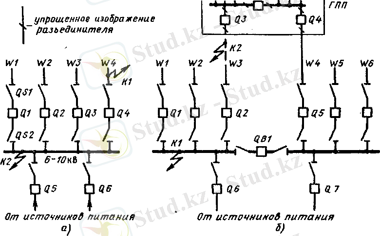 Сурет 8. 1- Бөлінбеген (а) және секцияланбаған (b) бір шиналық жүйесіндегі диаграммалар