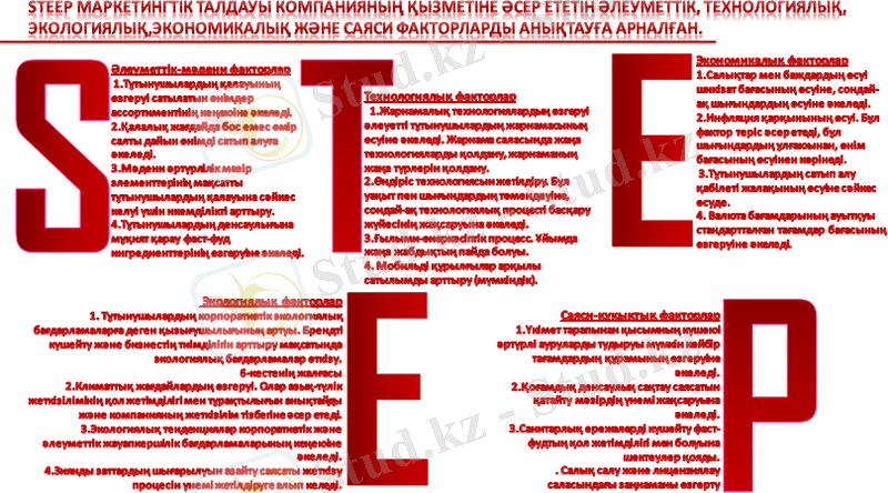 4. KFC тез тамақтандыру кәсіпорнына STEEP талдау немесе PEST-талдау