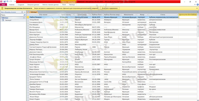 2-кесте - Access бағдарламасында жасалып жатқан мәліметтер қорының категориясы.