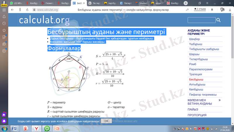 Зерттеу пәні: Көпбұрыштың ауданын табу
