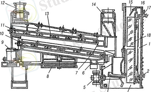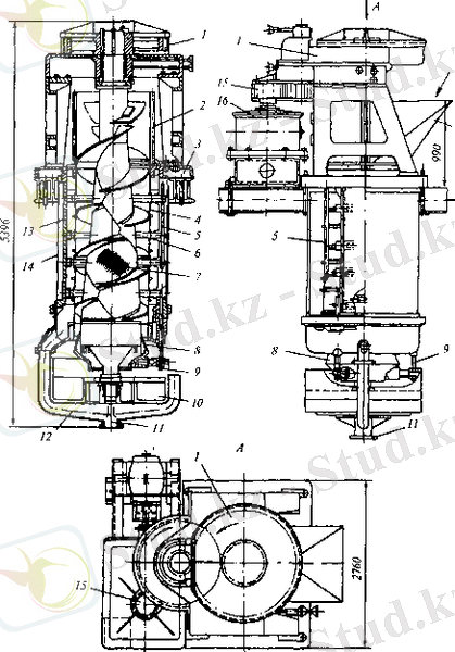Престің құрамына 1 және 15 тісті берілістер, воронка 2, плита 3, цилиндрлік Елек 4, құбыр 5, контрлопасти 6, білік 7, конустық Елек 8, болт 9, қырғыш 10, штуцер 11, арна 12, қаптама 13, аспалы болт 14 және редуктор 16 кіреді. Шойын плитасында 3