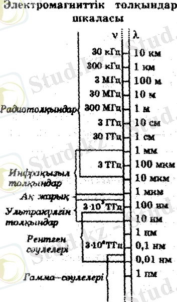 өрнектеріне сәйкес берілген жиіліктегі немесе толқын ұзындығындағы кез-келген электромагниттік сәулелерді ала аламыз (2-сурет) . Алайда, осының бәрінде де электромагниттік толқындардың вакуумдағы таралу жылдамдығы өзгеріссіз қалады, өйткені ол