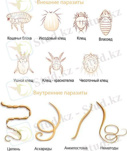 - бүргелер-бұл терінің қышуын, тырналуды, өнімділіктің төмендеуін және дене салмағының жоғарылауын тудыратын уақытша қан соратын эктопаразиттер.