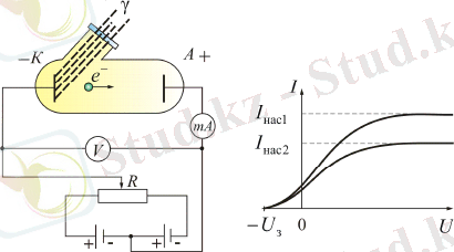 Фотоэффектінің вольт - амперлік сипаттамасы (ВАС) - электрондар ағынымен түзілетін I фототоктың кернеуге тәуелділігі - 2. 2 суретте көрсетілген.