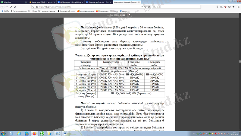 Тәжірибелік бірінші кезеңнен бастап мал ауыстырылмайды. Оларды тек негізгі рационға (HP) сәйкес азықтандырады