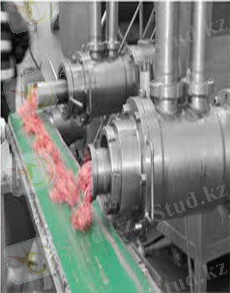 2. Осындай жолмен алынған ет ұлпасын бастапқы структурасынан толығымен бұза отырып майдалайды және қажетті май (қыртыс май) мөлшерін, дәмдеуіштерді қоса отырып, турама жасайды.