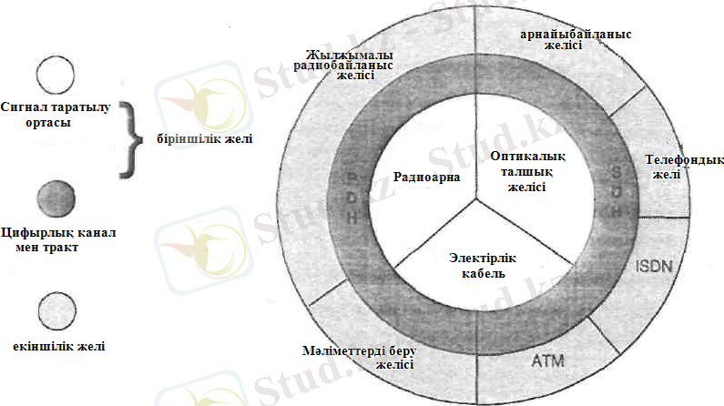 Сигналды тарату ортасы электробайланыс желісінің біріншілік тарамын құру үшін қолданылады. Цифрлық біріншілік желі синхрондық цифрлық иерархия негізінде (SDH) немесе плезосинхрондық цифрлық иерархия негізінде (PDH) негізде құрылу мүмкін. (сур. 4)