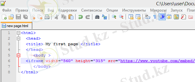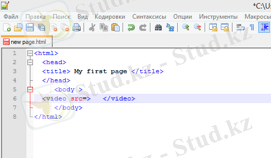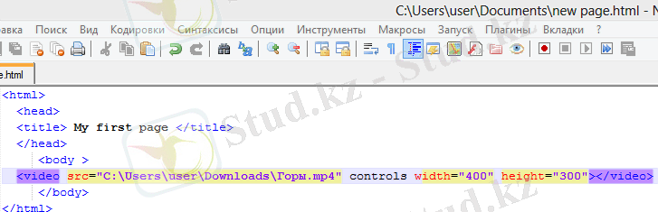 Сонымен, екінші бөлімде веб бетке сурет салуды қарастырдық, ал бұл бөлімде, веб параққа видео қоюды қарастыратын боламыз. Ең алдымен біз керекті видеоны таңдап алуымыз қажет ол үшін бізге видеоны интернет арқылы жүктеу қажет немесе компьютерде бұрыннан бар видеоларды қолдануға болады, бастысы видео бүлінбеген сапасы жақсы болуы шарт. Сонымен, суреттегідей кодты жазып шығамыз (11. сурет)
