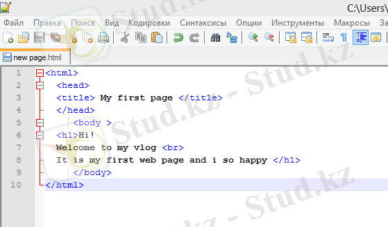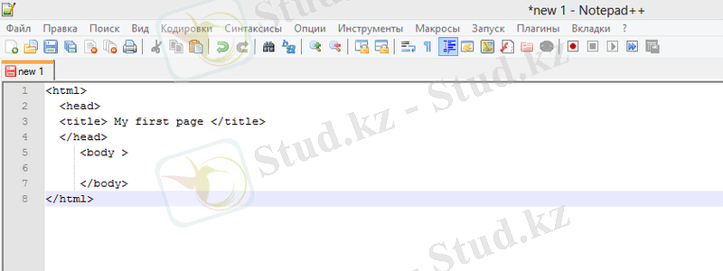 - Барлық компьютерде блокнот стандартты бағдарламасы бар немесе арнайы Notepad++ (1сурет) бағдарламасын жүктеп сол арқылы ашуғада болады. Маған Notepad++ ыңғайлы сондықтан осымен жұмыс жасайтын боламыз.