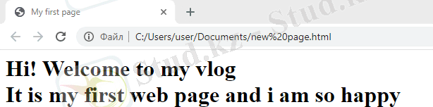 - Енді сақталған файлды ашу үшінДокументы - Біз сақтаған файл аты-Открыт спомощью(бұл жерде біз браузер таңдаймыз) және біз жазған кодтың нәтижесі пайда болады(4. сурет)