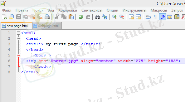 Веб бетке мәтін орналастыру үшін суретте көрсетілген тегтерді жазып шығу керек. (5. сурет)