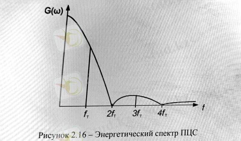 Мысал ретінде біз ИКМ-30 беріліс жүйесінің сағат жиілігін параметрлермен есептейміз: Nтлф=30; Nси = 2; fd=8 кГц; m=8. Нәтижесінде біз аламыз: fт= 8(30+2) 8=2048 кГц. Топтық импульсті-кодтық модуляцияның энергетикалық спектрі 0 және 1-ге тең болатын сигналдың келесі түрі бар, 2. 16-сурет.