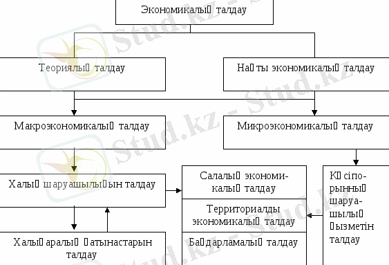 Экономикалық талдау түрлері. Экономикалық талдау кәсіпорын қызметінің әртүрлі бағыттары, сала, халықаралық байланыстар бойынша жүргізіледі (сурет 1. )