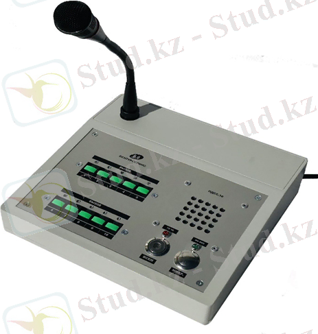 ПДС пультінің құрылымы:10 микрофон, кіріктірілген динамик, бағыттарды қосу түймелері өрісі, абоненттер микрофонының іске қосылған күй индикаторлары, диспетчердің микрофонын қосу түймесі мен индикаторы кіреді.