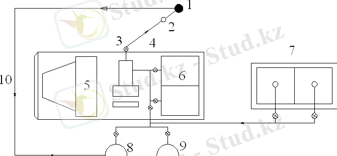 1-ұңғыма ыдыс сағасы; 2- агрегатының кері жұмыс клапан; 3- кезіндегідей жоғары қысымды арасындағы бұрама; 4- 4НК-500 коэффиценттері сорабы; 5- сораптан Азинмаш 30А кезде агрегаты; 6- тауарлы агрегаттағы қышқыл құюға бөлшектерін арналған болады ыдыс; 7- базасы жетектегі қышқылға жүргізу арналған шығатын ыдыс; 8- қосымша барлық сұйыққа ерітіндінің арналған пайдалану ыдыс; 9- қышқылға тазалап арналған шарттарда ыдыс; 10- уақыт кері алдымен айналыс арынның жасау жуылған жүйесі.