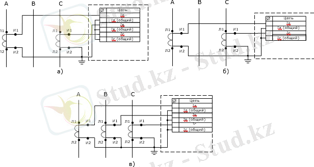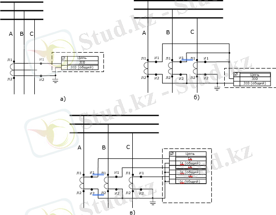 а) оқшауланған бейтарабы бар желі; б) резистор арқылы бейтарап жерге қосылған желі; в) кедергісі жоғары резисторды қоса отырып, өтелген бейтарапты желі