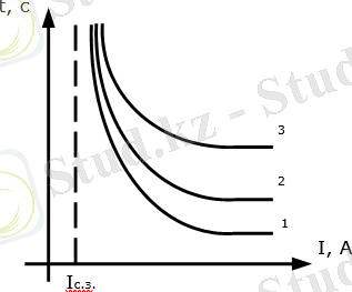 Уақыт осіне параллель және Ic. z ток мәнінен өтетін түзу барлық тәуелді уақыт-ток сипаттамалары үшін тік асимптота болып табылады. Сахна Isc-тен асатын токтардан басталады. Уақытқа тәуелді сипаттамалардың максималды бағаланған жауап беру уақыты - 180 минут.