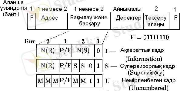 - 10 - Supervisory (S) frame басқарушы. S-frame басты ақпаратты, мәртебе туралы есепті ұсына алады, сонымен қатар I-фреймді алуды растай алады. S- фреймдерде ақпараттық жол жоқ;