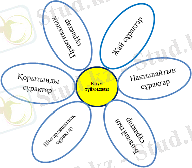 Аталған мақсат пен міндеттерді шешуде Б. С. Блум жүйесіндегі алты категория орындалды.