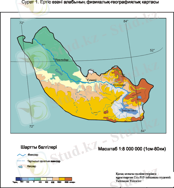 Ертіс өзені алабының физикалық-географиялық жағдайы көрсетілген (Сурет 1) [1] .