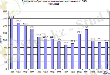 Шығыс Қазақстанның гидрометеорологиялық орталықтарының мәліметтері бойынша Өскемен қаласының атмосфера ауасының ластану көзі 1991 жыл мен салыстырғанда біршама азайғанын төменгі кестеден көруге болады. Бұл жағдайды немен түсіндіруге болады: егемендігімізді алғаннан кейін өнеркәсіптің дамуы айтарлықтай төмендеп кетті, себебі бұрынғы экономикалық байланыстар шетелдікке айналды, содан соң 90-шы жылдары республикамызда экономикалық тоқыраумен де байланыстыруға болады. Қазіргі кезде өнеркәсіптің дамуы дұрыс жолға қойылып жатыр, бірақ бұрынғы деңгейіне жеткен жоқ. Сонымен қатар қазіргі кезде өнеркәсіптердегі тастандыларды тазалау фильтрлері де ескіріп, бүгінгі заманның талабына сай емес, оның бәрін жаңалау қомақты сомаға айналады( кесте 1) .