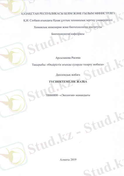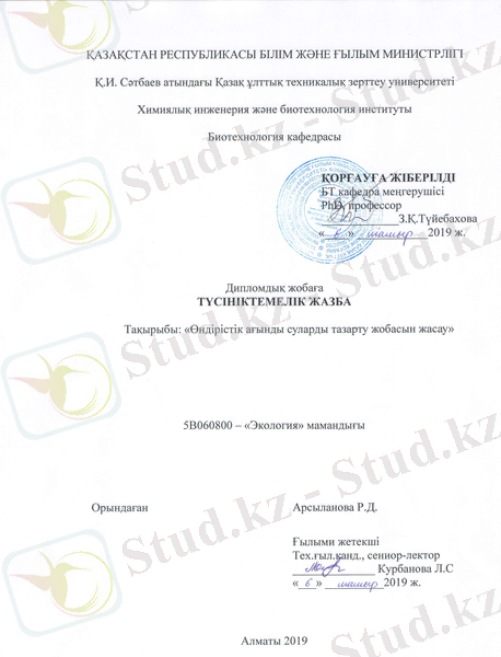 ANNOTATIONThe thesis deals with the issues of providing the most effective method of technological purification of mine waters maleevsky mine ZMPK MLP «Kazzinc».