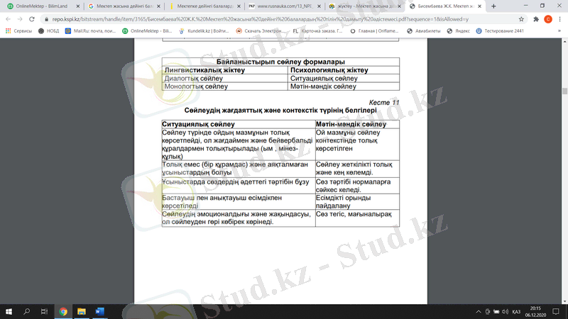 Психологиялық еңбектерге жасалған талдау негізінде балалардың байланыстырып сөйлеуін қалыптастырудың ерекшеліктері анықталды: