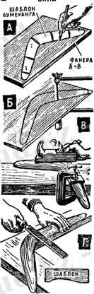 1-қадам. Шалқаю бұрышымен снарядтың соңына орналасқан етіп бумерангтің суретін фанераның үстіне салып аламыз.