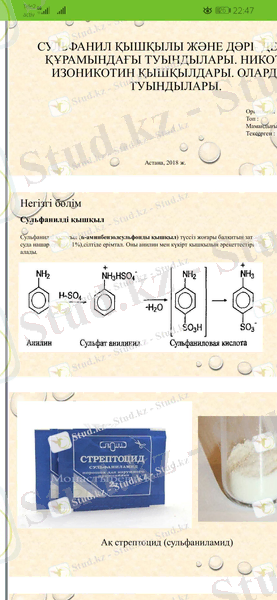 Курстық жұмыстың тақырыбы: Сульфаниламидтер. Оларды қолдану жолы.