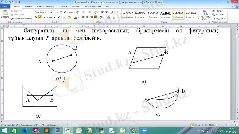3. Егер А мен В дөңес жазық Ғ фигураның ішкі нүктелері болса, онда АВ кесіндінің барлық нүктесі Ғ -тің ішкі нүктесі болады.