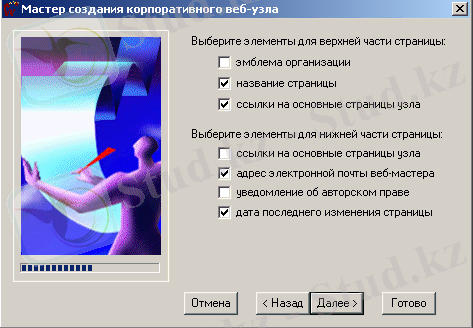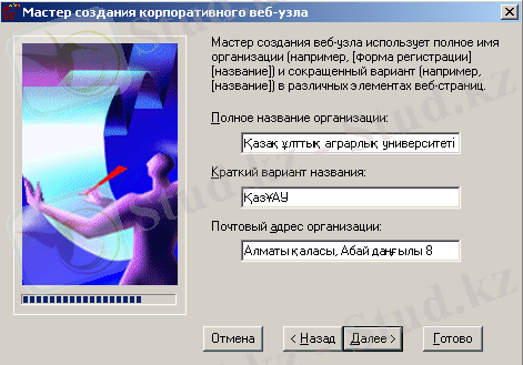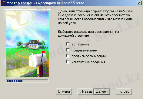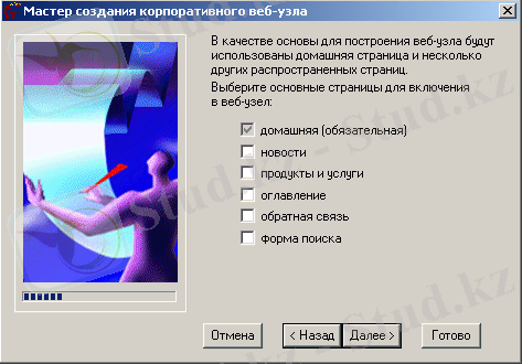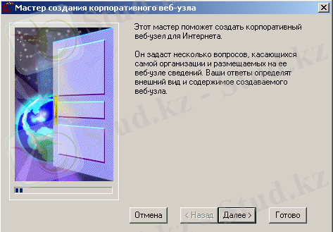 5-сурет. «Мастер создания корпоративного Web-узла» шаблонының бірініш сұхбаттық терезесі.