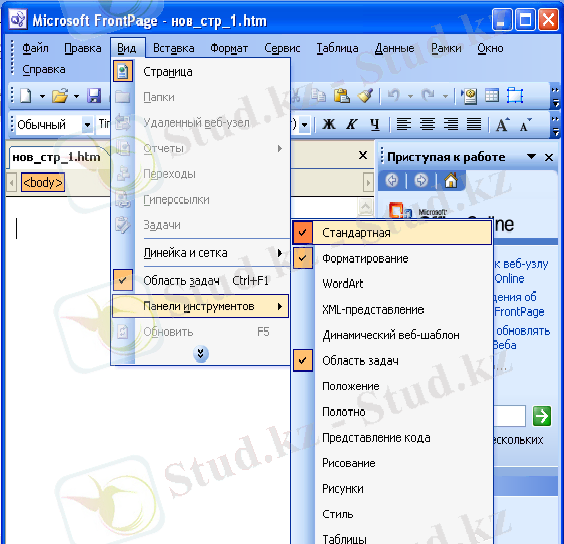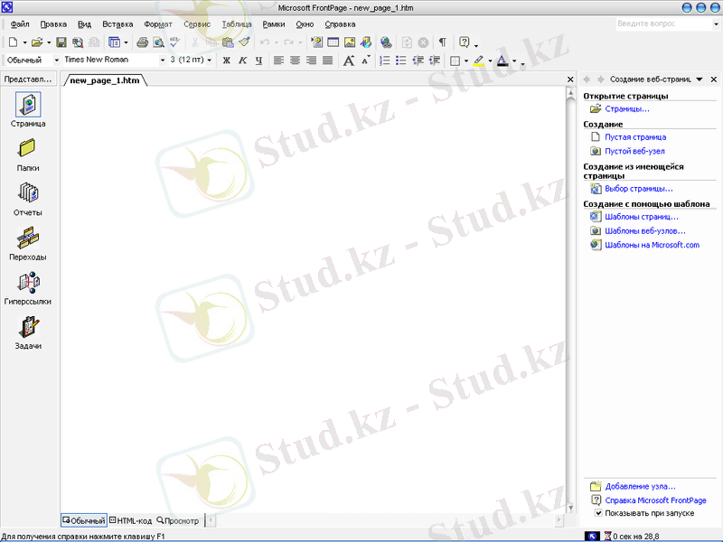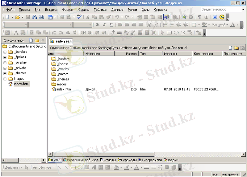 1-сурет. MS FrontPage 2003 бағдарламасы.