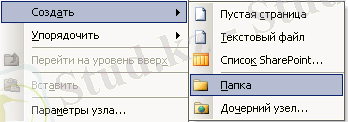 16-сурет. Жанама мәзір көмегімен ашылған «Создать →Папку» командасы