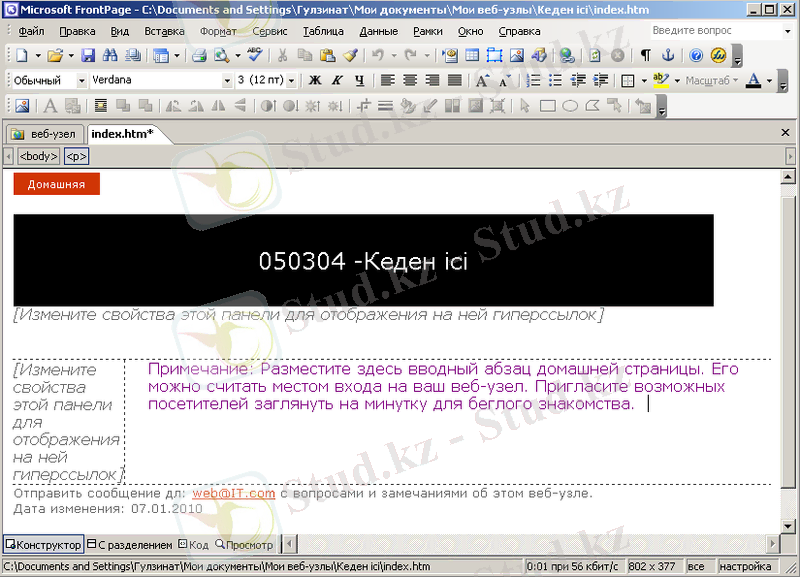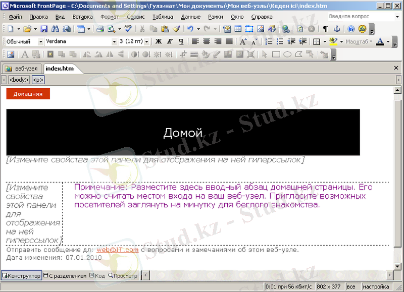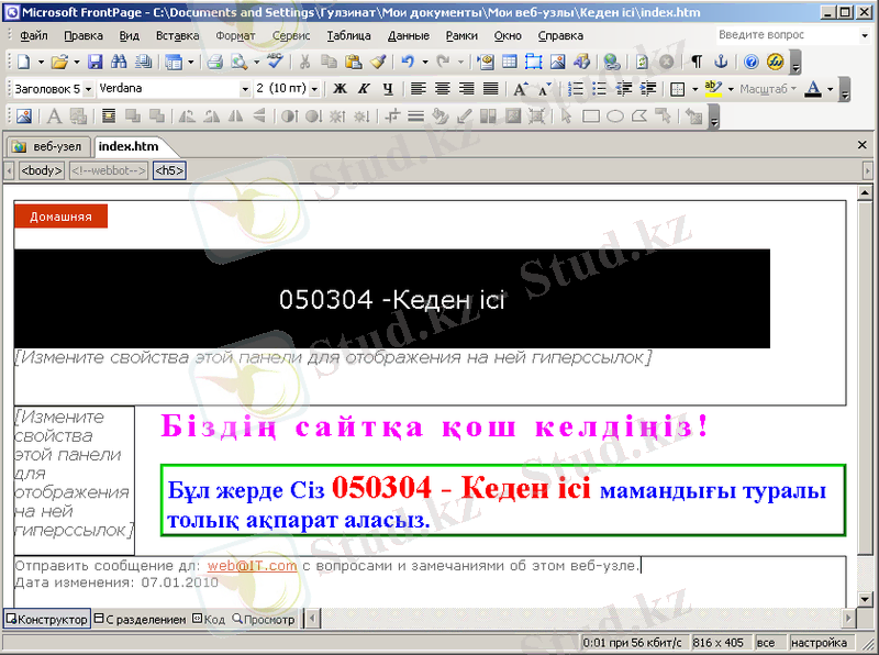 Сайттың үй беті (домашняя страница) бетін редакциялау үшін index. htm файлын ашайық (17-сурет) .