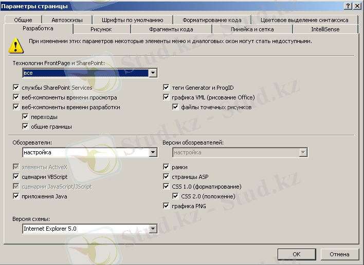 21-сурет. «Сервис →Параметры страницы» командасының «Разработка» бөлімі.