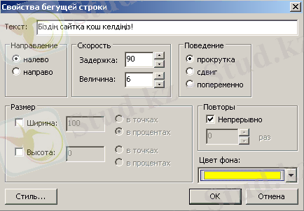Жалпы веб-беттің қасиеттерін өзгертейік, ол үшін: