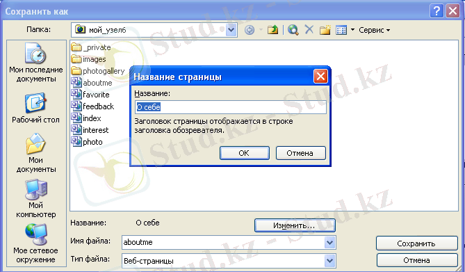 Сайт бумасында шебер index. htm деген атаудан тұратын үй бетін (домашняя страница) орналастырған. Сонымен бірге суреттерді сақтауға арналған