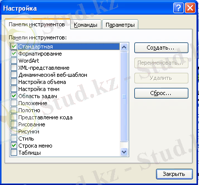 Нәтижеде « Настройка» сұхбаттық терезесі ашылады. Мұнда қажетті панелдерді қосуға болады (3-сурет) .