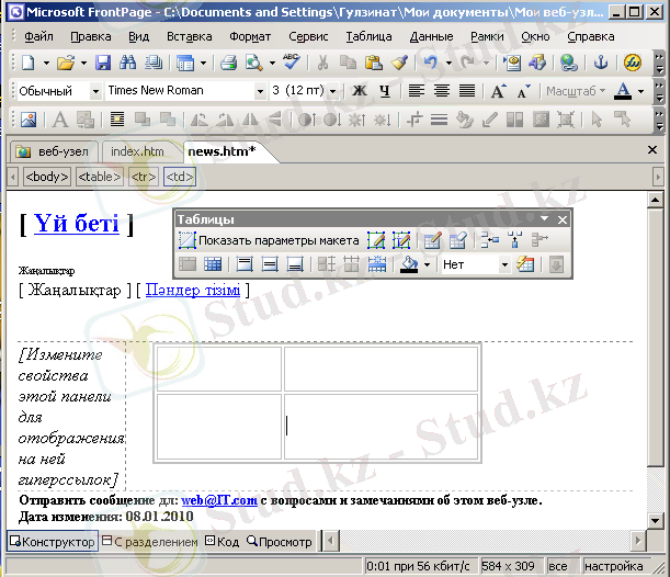 MS FrontPage 2003: веб-беттерді құру, өңдеу және жариялау