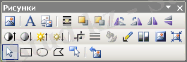 «Вид→Панели инструментов→Рисунки» командасынан кейін экран бетінде «Рисунки» құрал-саймандар тақтасы ашылады (39-сурет) .