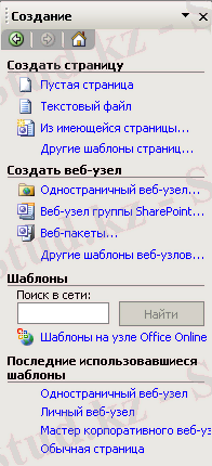2) « Файл→Создать→Страница или Web-узел» командасы көмегімен;
