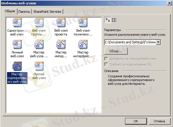 4-сурет. « Шаблоны веб-узлов» сұхбаттық терезесі.