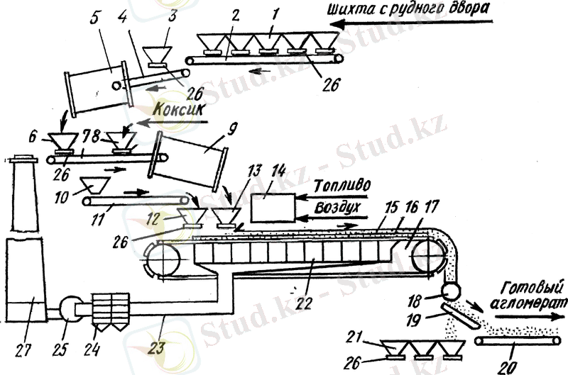 Агломерациялык фабрика келесі негізгі бөлімшелерден құралады:
