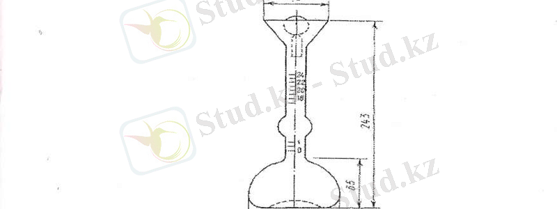 Цементтің тығыздылығын анықтау мемлекеттік стандартқа ГОСТ 310. 2-76, 2. т. сай жүргізіледі. Бұл үшін шыныдан жасалынған көлем өлшегіш Ле-Шателье (1 сур. ) аспабы пайдаланады. Көлем өлшегіш штативке бекітіліп және белгі жүргізілген белгілі температурасы бар шыны түтігін орналастырады. Түтіктегі судың деңгейі аспабтың белгіленген бөлігінен жоғары болу керек. Көлем өлшегішті сусыздандырылған керосинмен нөл белгісінің төменгі деңгейіне дейін толтырады, одан кейін нөлді белгінің жоғарғысында орналасқан жоғарғы бөлігін сорғыш қағаздан жасалған тампонмен мұқият сүртеді.