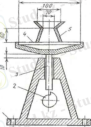 1-стол; 2-сілкіндіргіш; 3-қозғалатын бөлімі; 4-диск; 5-үлгі-конус.